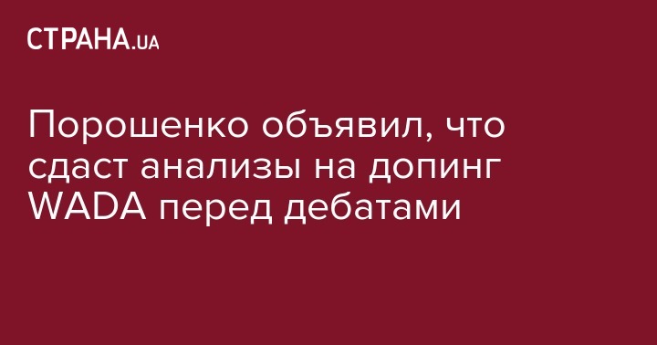 Порошенко объявил, что сдаст анализы на допинг WADA перед дебатами
