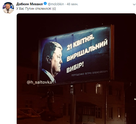 "У вас Путин отклеился", - написал нардеп от Оппоблока Михаил Добкин.