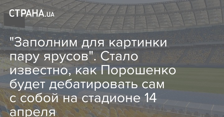 Правда, оппонент действующего президента - Владимир Зеленский быть на них не планирует (он намерен прийти на стадион 19 апреля), поэтому "дебаты" скорее всего будут иметь характер сольного выступления гаранта. Несмотря на то, что местом проведения выбран стадион, администрация спорткомплекса ко многим организационным аспектам не имеет отношения.