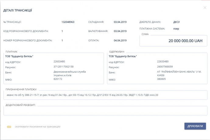 Транзакция с портала публичных финансов Фото: epravda.com.ua