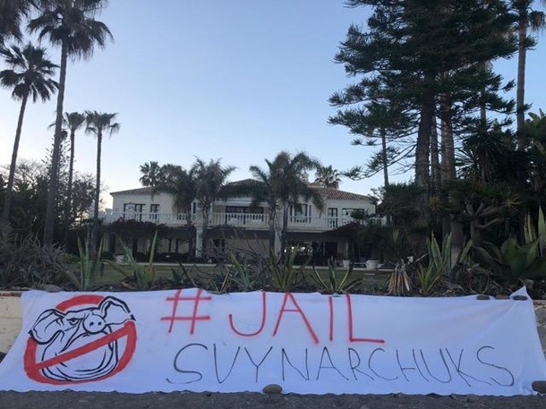 Плакаты "Мародер", "Грабят" и "Держи слово". Нацкорпус посетил виллы Гладковского и Порошенко в Испании