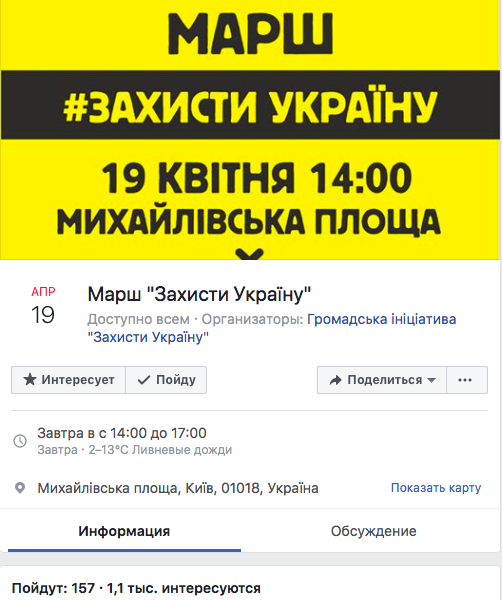 На пятницу, 19 апреля, в Киеве анонсирован марш "Защити Украину".