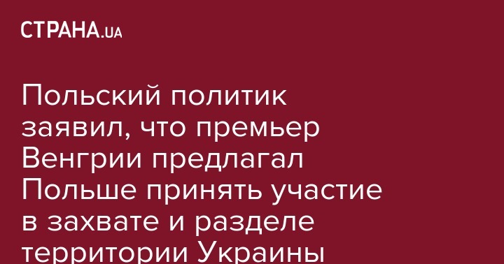 Премьер-министр Венгрии Виктор Орбан во время кризиса в Украине предлагал Польше захватить украинские земли и поделиться ими. Такое заявление сделал польский политик Славомир Нитрас, сообщает Onet.pl.