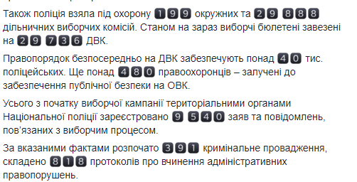 "Правопорядок непосредственно на УИК обеспечивают более 40 тыс. полицейских. Еще более 480 правоохранителей привлечены к обеспечению общественной безопасности на ОИК (окружных избирательных комиссиях)", - заявил Тракало.