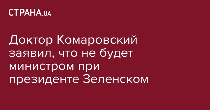 Доктор Комаровский заявил, что не будет министром при президенте Зеленском
