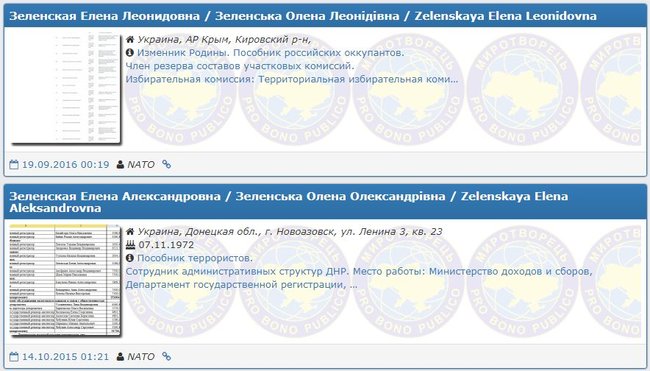 Напомним, что ранее сайт "Миротворец" внес Елену Зеленскую в черный список как "информатора боевиков".