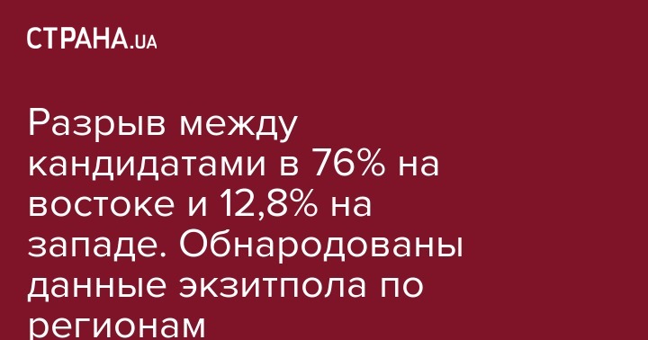 Согласно его результатам, поддержка Владимира Зеленского в западных областях достигла 12,8%, в центральных - 72,3%, в южных - 86%, восточных - 88%.
