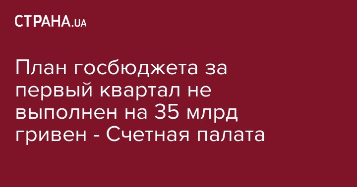 План пополнения общего фонда государственного бюджета в первом квартале 2019 года не был выполнен на 35 млрд гривен, или 10,8%. Об этом заявил глава Счетной палаты Валерий Пацкан, сообщает УНН.