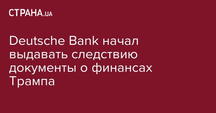 Самый крупный частный банк ФРГ Deutsche Bank пошел на сотрудничество с американской Фемидой и начал выдавать следователям документы, связанные с финансами президента США Дональда Трампа.