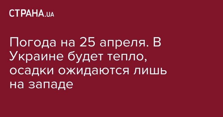 В четверг, 25 апреля, погода в Украине порадует теплом, лишь в некоторых западных областях ожидается небольшой дождь, сообщает сайт Укргидрометцентра.