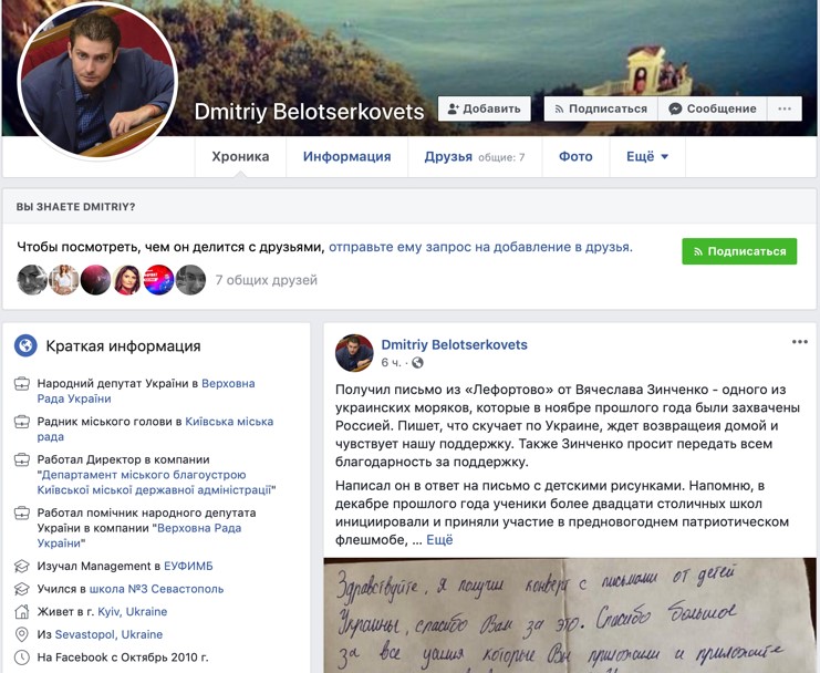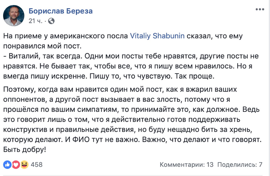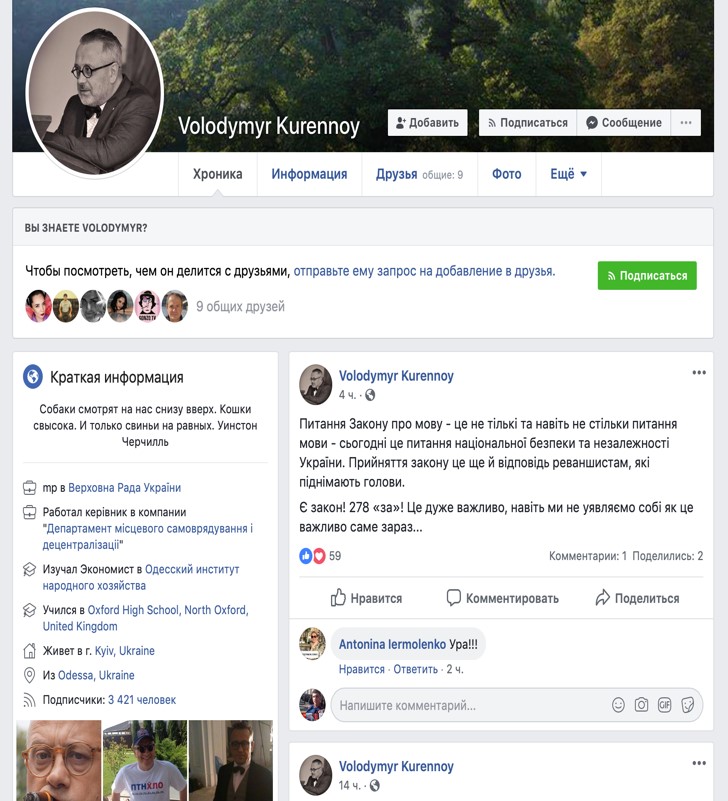Стоит заметить, что на странице политика в Facebook можно увидеть публикации не только на русском, но и украинском языке.