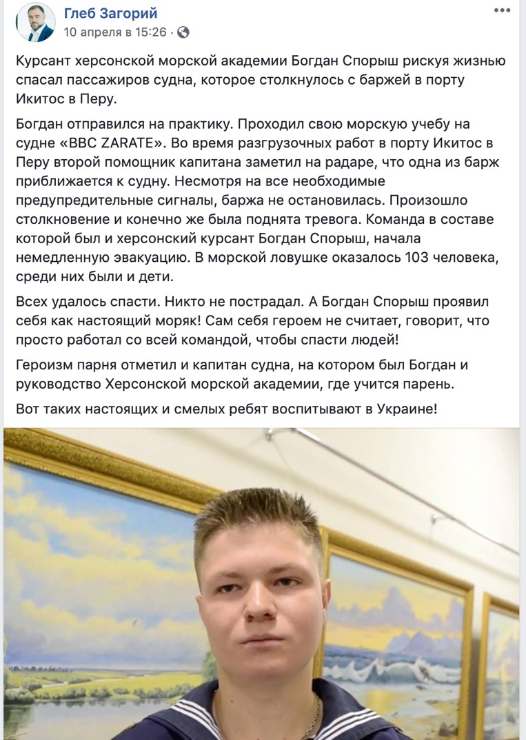 А вот Глеб Владимирович описывает ситуацию с курсантом херсонской морской академии Богданом Спорыш.