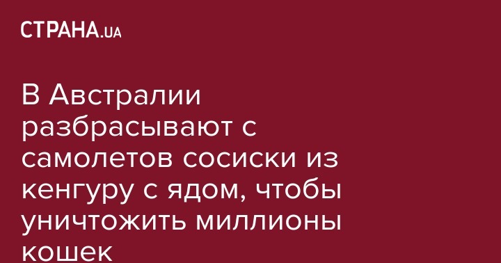 В 2015 году правительство Австралии назвало диких кошек вредителями — и поручило за пять лет истребить два из примерно 20 миллионов особей, которые живут на континенте. Необычный способ убийства диких кошек придумали в штате Западная Австралия. Там с легкомоторных самолетов разбрасывают отравленные сосиски (за месяц - около полумиллиона штук).