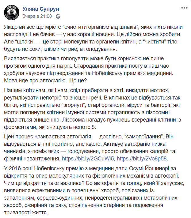 Скриншот: Facebook/Ульяна Супрун