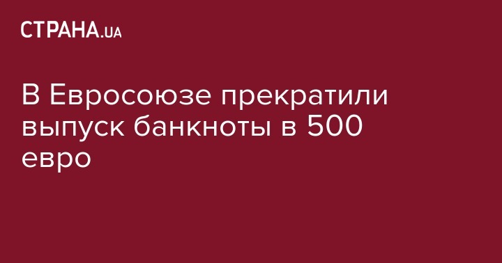В Евросоюзе центральные банки прекратили выпуск банкнот номиналом в 500 евро. Об этом передает Bloomberg.