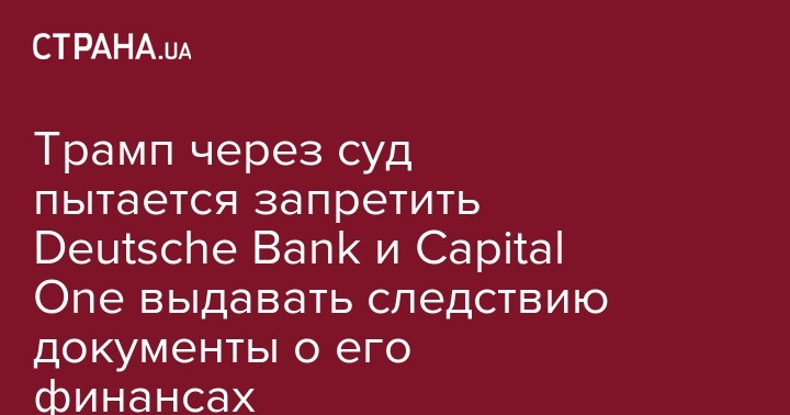 Президент США Дональд Трамп и члены его окружения подали федеральный иск против Capital One и Deutsche Bank, который начал выдавать следствию документы об их финансах. Об этом пишет "Интерфакс"