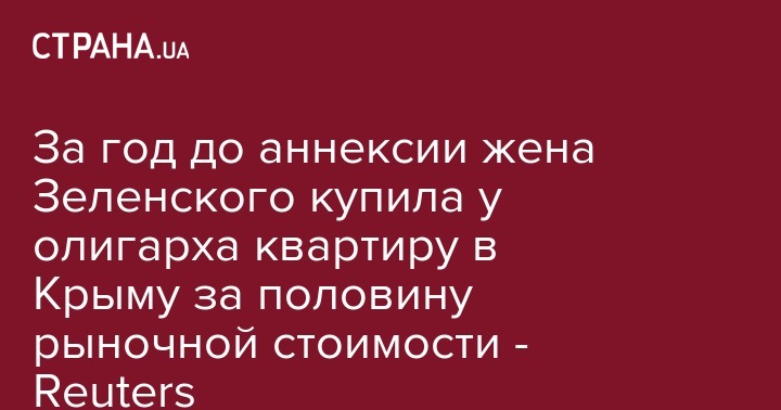 За год до аннексии жена Зеленского купила у олигарха квартиру в Крыму за половину рыночной стоимости - Reuters
