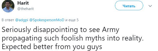 "Не на шутку разочарован, видя то, как армия распространяет такие глупые мифы. Ожидал от вас большего, ребята", - пишет пользователь с никнеймом Harit.