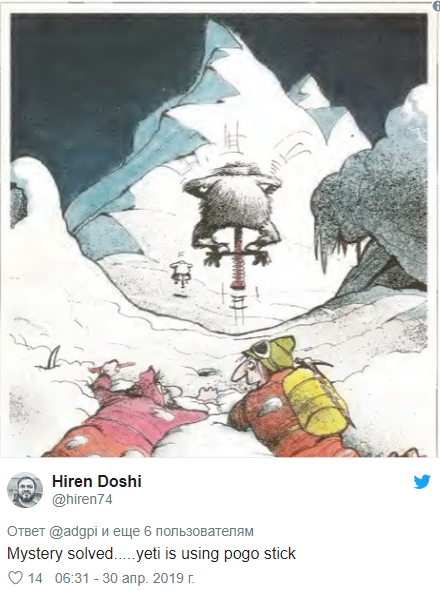 "Вот и разгадка! Йети пользуется палкой-скакалкой", - пишет один пользователь Хирэн Доши.