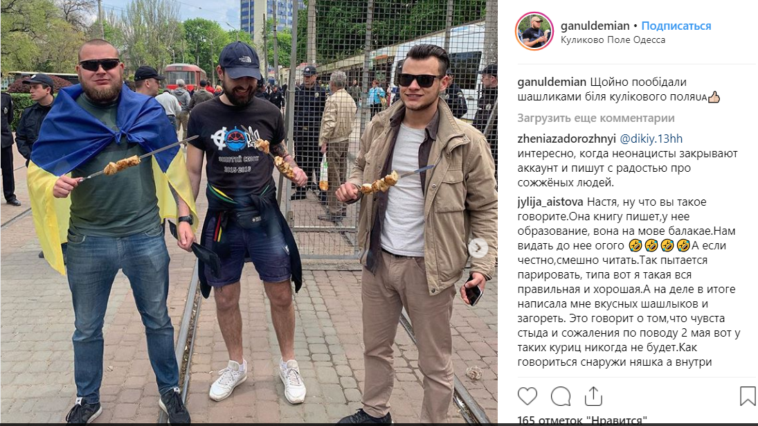 17.12  Одесский майдановский активист Демьян Ганул опубликовал в Instagram фото с шашлыками возле Куликова поля в Одессе.