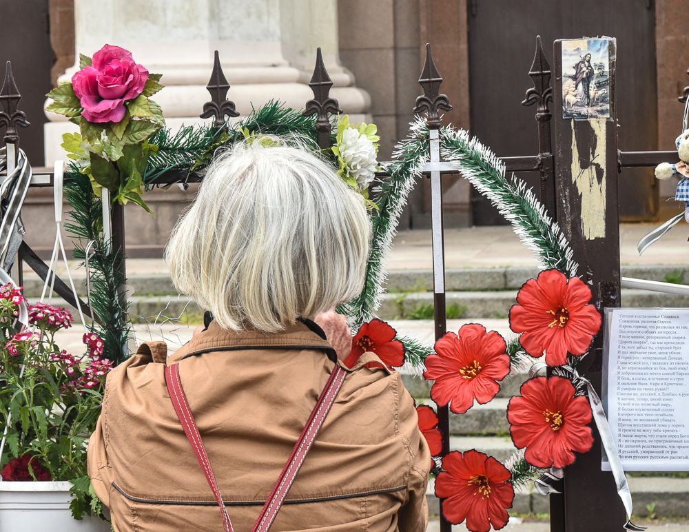09.35 Духовенство Одесской епархии совершило заупокойные богослужения на местах массовой гибели людей 2 мая 2014 года в Одессе.