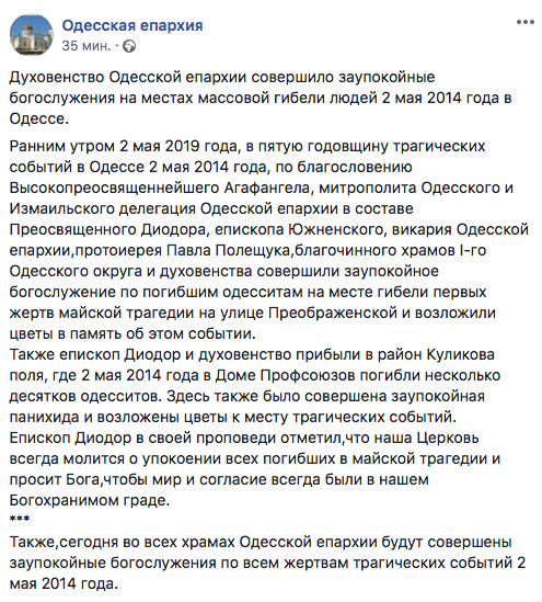 10.35 Заупокойное Богослужение по жертвам трагедии, погибших 2 мая.
