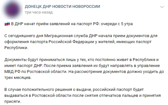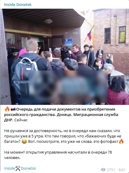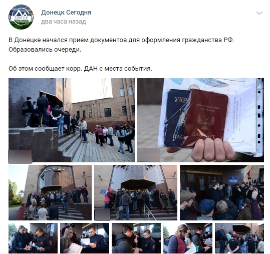 Уже в середине дня стало известно, что миграционная служба так называемой "ДНР" приняла первые 100 заявлений на гражданство РФ.