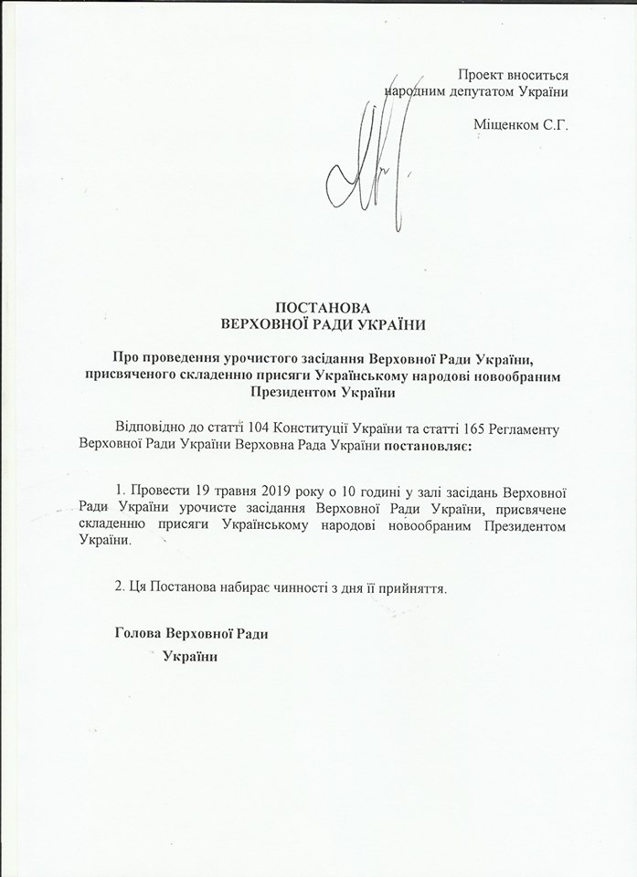 Мищенко напомнил, что присяга украинскому народу является обязательной для вступления в должность нового президента. Он отметил, что "представители нынешней пока действующей власти" делают всё возможное, чтобы отсрочить инаугурацию Владимира Зеленского.