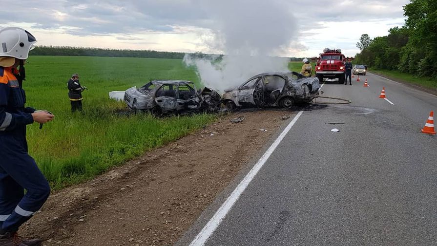 Предварительно установлено, что авто выехало на встречную полосу, где и столкнулось с другим автомобилем. Сообщается, что в транспортном средстве был газовый баллон, который после столкновения взорвался.
