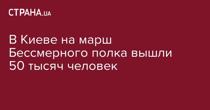 9 мая более 50 тысяч человек приняли участие в прошедшем в Киеве марше Бессмертного полка, который прошел от метро Арсенальная и закончился у Вечного огня в парке Славы. Такие данные сообщили организаторы шествия.