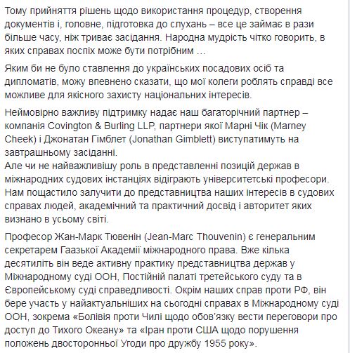Она также подробно рассказала, кто будет юридически сопровождать Украину в процессе. Так, поддержку нашей стране оказывает компания Covington & Burling LLP.
