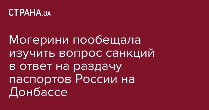 Могерини пообещала изучить вопрос санкций в ответ на раздачу паспортов России на Донбассе
