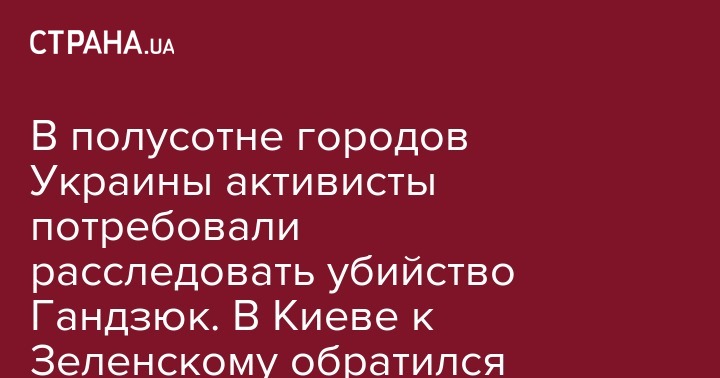 В полусотне городов Украины активисты потребовали расследовать убийство Гандзюк. В Киеве к Зеленскому обратился отец погибшей