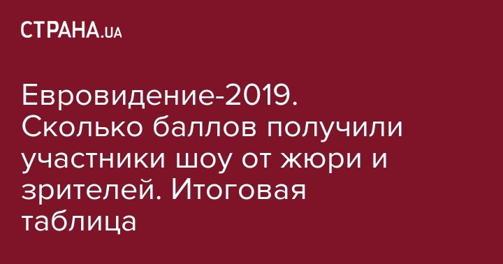 Евровидение-2019. Сколько баллов получили участники шоу от жюри и зрителей. Итоговая таблица