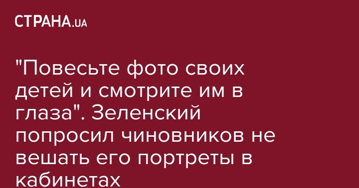 "Повесьте фото своих детей и смотрите им в глаза". Зеленский попросил чиновников не вешать его портреты в кабинетах