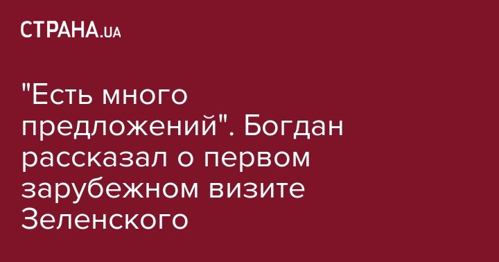 По словам Богдана, президент Зеленский уже получил несколько приглашений и теперь решает, куда именно поедет во время своего первого зарубежного визита.