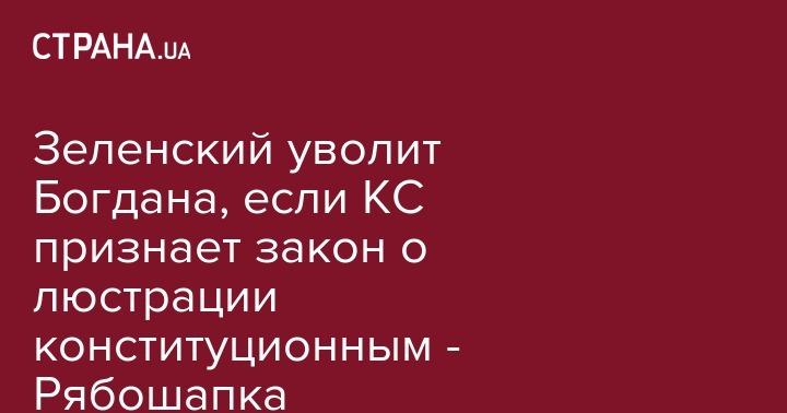 "Как только Конституционный суд вынесет решение, что закон о люстрации в этой части отвечает Конституции, с этого дня президент уволит Богдана как человека, который должен проходить через процедуру по очищению власти", - заявил Руслан Рябошапка.