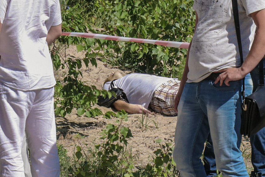 Сообщается, местный житель, выгуливая собаку, увидел лежащего в кустах мужчину с окровавленной головой и немедленно позвонил в полицию. Прибывшие на место происшествия правоохранители установили, что у погибшего мужчины огнестрельное ранение в правый висок. Также между ног у трупа лежал пистолет.