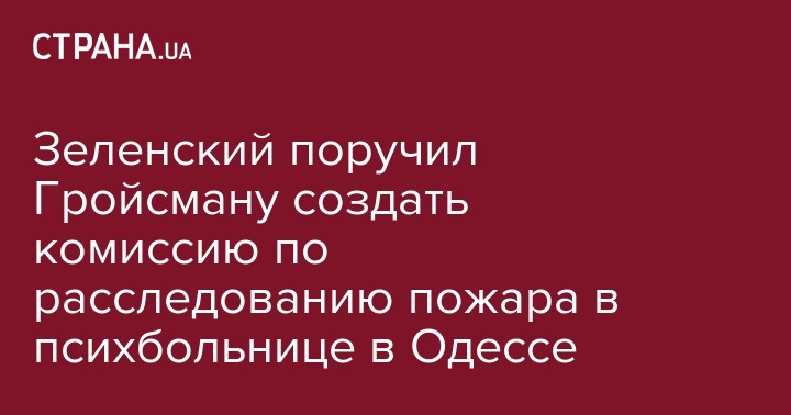Глава Украины Владимир Зеленский поручил главе правительства Владимиру Гройсману немедленно создать государственную комиссию по расследованию пожара в одесской психиатрической клинике. Об этом президент написал в своем Twitter.