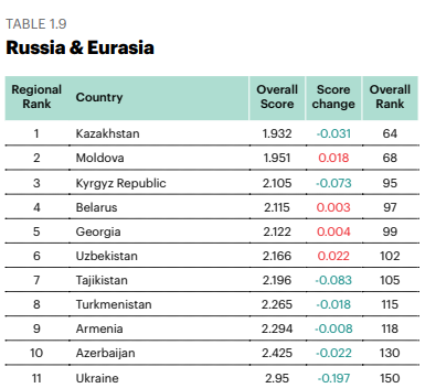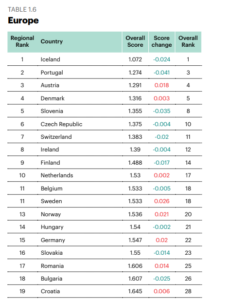 Отмечается, что несмотря на все конфликты и насилие во всем мире, "Глобальный индекс миролюбия" впервые слегка повысился за последние пять лет. Самым миролюбивым регионом мира, по версии IEP, остается Европа. Этому способствовало снижение количества терактов в 2018 году, а также сокращение притока мигрантов.