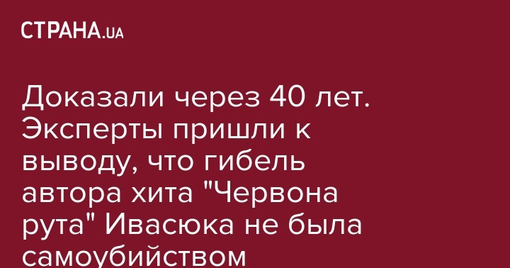 Киевский НИИ судебных экспертиз (КНИИСЭ) пришел к выводу, что найденный повешенным 40 лет назад композитор-исполнитель Владимир Ивасюк, автор бессмертного хита "Червона рута", физически не мог бы совершить самоубийство. Такое заявление сделал директор этого учреждения Александр Рувин, передает "Укринформ".