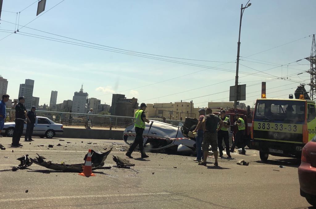 Ранее сообщалось, что на мосту столкнулись Skoda и Chevrolet Aveo. Chevrolet в результате ДТП разорвало на части, все четыре человека, которые были в авто, погибли на месте. Спасатели прибыли на место аварии, чтобы убрать разбросанные по проезжей части детали машины.