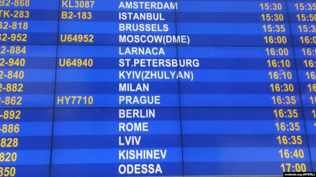 Белорусский аэропорт в Минске присоединился к акции #KyivNotKiev и переименовал названия нескольких украинских городов. Об этом сообщает местное издание "Радые Свабода".