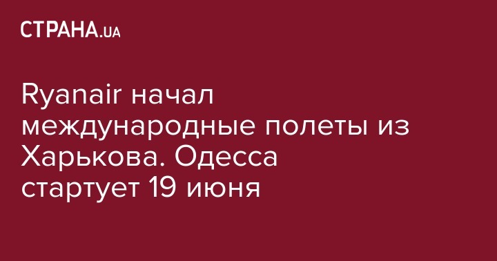 Ryanair начал международные полеты из Харькова. Одесса стартует 19 июня