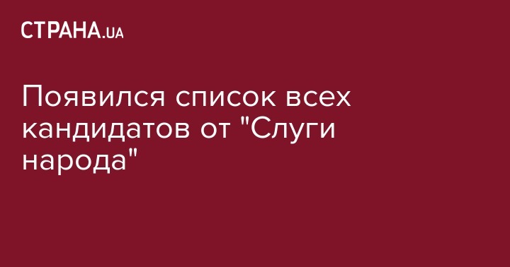 В первую пятерку списка вошли глава партии, управляющий партнер и директор Ukrainian Politconsulting Group Дмитрий Разумков, представитель президента Украины Зеленского в парламенте, доктор юридических наук, член-корреспондент НАНУ Руслан Стефанчук, эксперт команды Зеленского по правовым вопросам и судебной реформе, доктор юридических наук Ирина Венедиктова, глава Совета волонтеров при Минобороны в 2014-2017 гг. Давид Арахамия и эксперт по антикоррупционной политике, глава Совета общественного контроля НАБУ Галина Янченко.