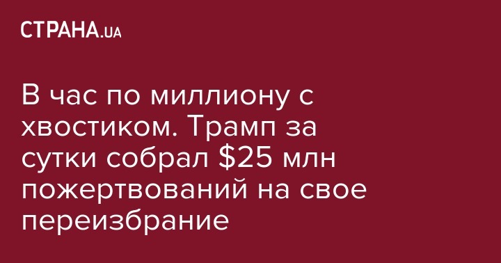 "Дональд Трамп собрал на свое переизбрание рекордные $24,8 млн менее чем за 24 часа. Уровню энтузиазма в отношении президента нет равных и нет подобного", - написала она.