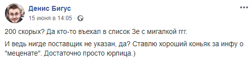 При этом, похоже, ее опередил президент, который сказал об этом на сегодняшней встрече с бизнесменами. Наталья Емченко в посте отметила журналиста Дениса Бигуса, который раньше пообещал коньяк тому, кто первым раскроет информацию о меценате, который купил скорые, но Зеленский не назвал его.