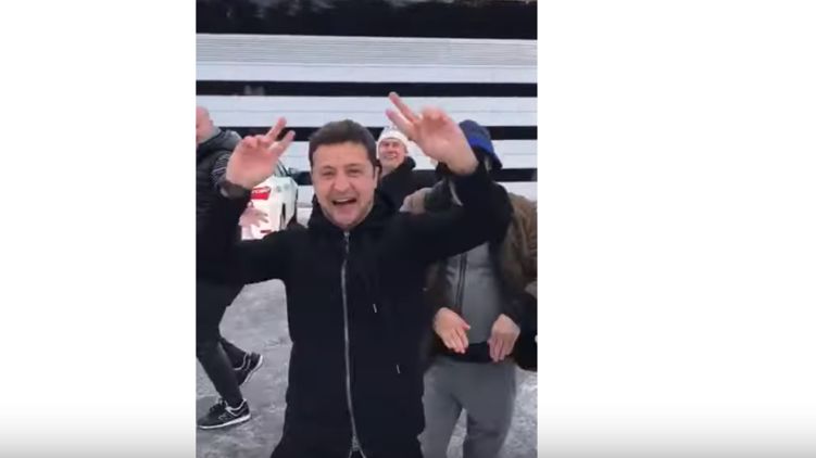 На видео присутствуют Евгений Кошевой, Александр Пикалов, Валерий Жидков, Юрий Корявченков, другие участники студии. Снимает их Владимир Зеленский.