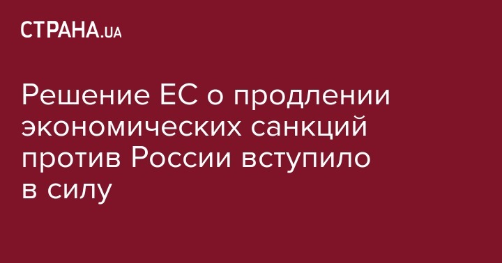 Решение ЕС о продлении экономических санкций против России вступило в силу