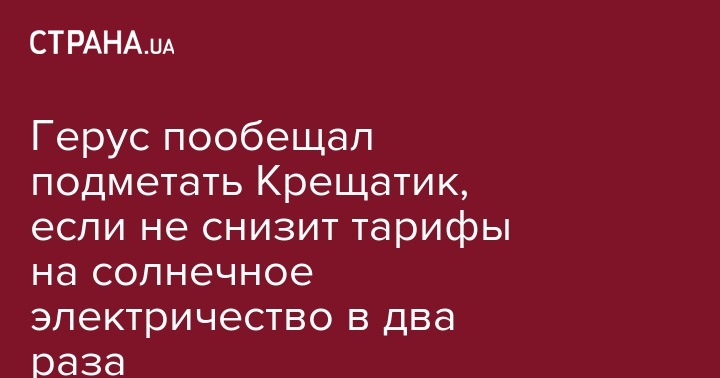 Герус пообещал подметать Крещатик, если не снизит тарифы на солнечное электричество в два раза